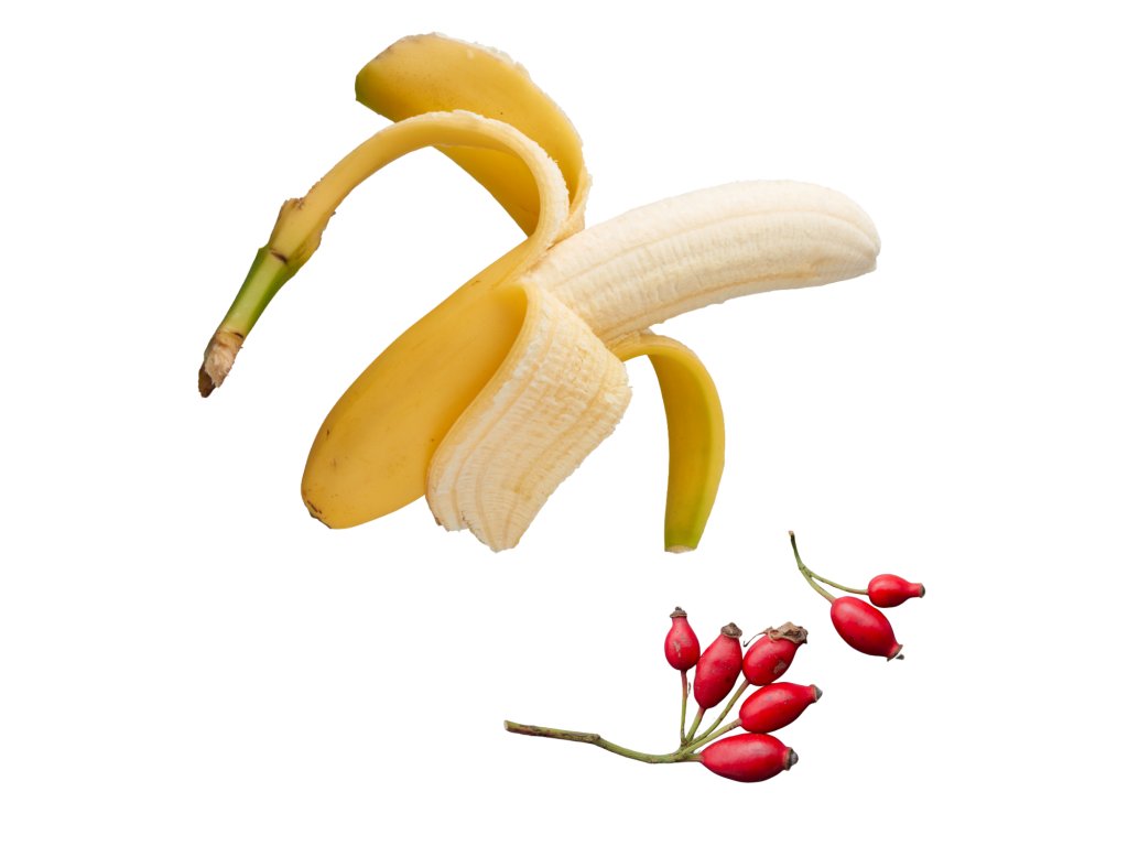 Banán, ovesné vločky, pohanková mouka, vejce, kokosový olej, šípek sušený