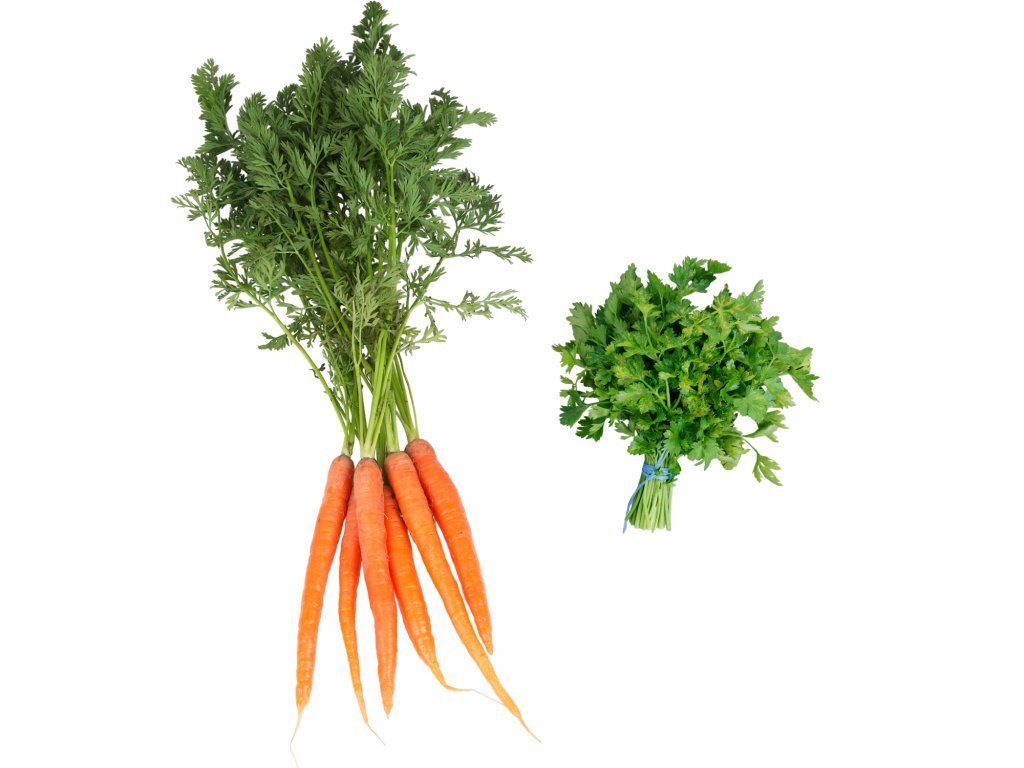 Mrkev, ovesné vločky, vejce, kukuřičná mouka, kokosový olej, petržel kadeřavá