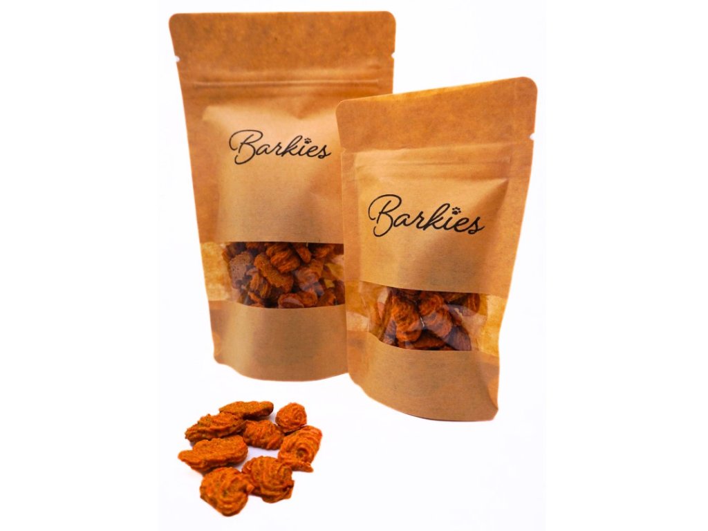 Pamlsky Barkies jsou vyráběné ručně z vysoce kvalitních surovin, bez přidaných barviv, konzervantů a jiných éček. Jsou suché, takže nezašpiní celou kapsu a při tom se skvěle lámou, pokud potřebujete podat chlupáčovi menší kousek, nebo mu chcete dopřát odměn víc! Jsou zabalené v zipovém sáčku, takže Vám vydrží déle čerstvé a nikde se nerozsypávají!
